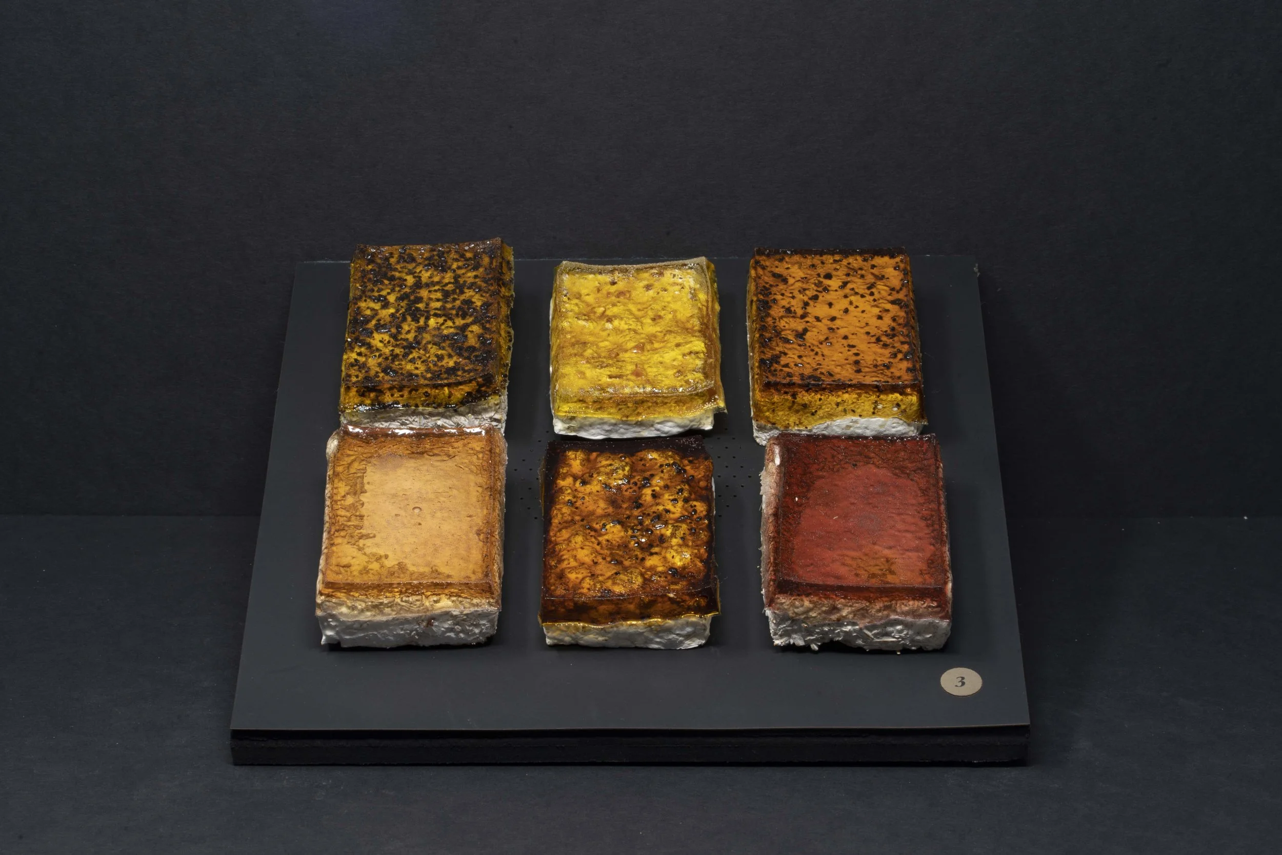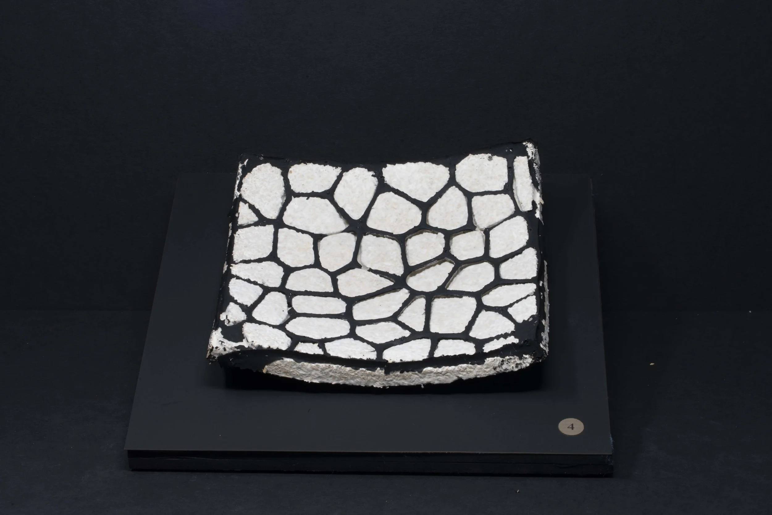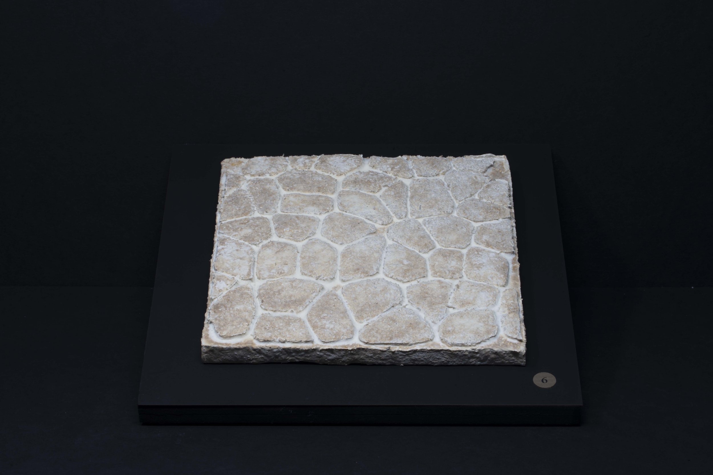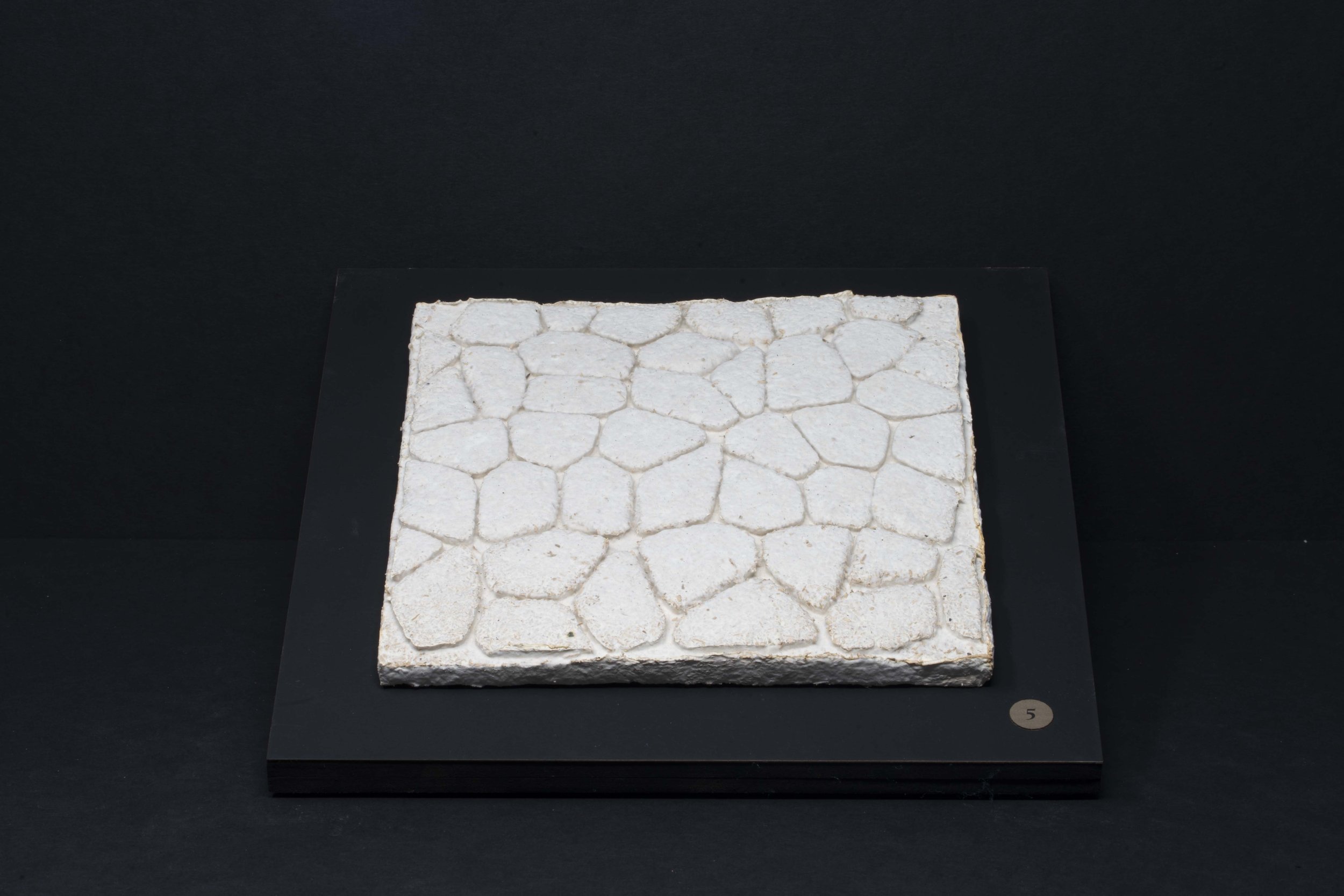 Each piece was grown by and with mycelium. This snow white and nearly microscopic organism fuses organic matter which can be casted in molds to produce sculptural shapes and textures. Color is obtained by aging the organism, through laser engraving, or by adding layers of bioplastic.